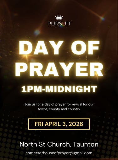 We will be gathering in the town centre (by the Taunton Visitor Centre) at midday for a time of music and worship led by the Pursuit Of Gospel Choir and then heading to North St Church for 11 hours of continuous worship and prayer from 1pm to midnight on April 3rd. This time will be led by worship teams and prayer leaders from many different churches across the town. Come and join us at any time!